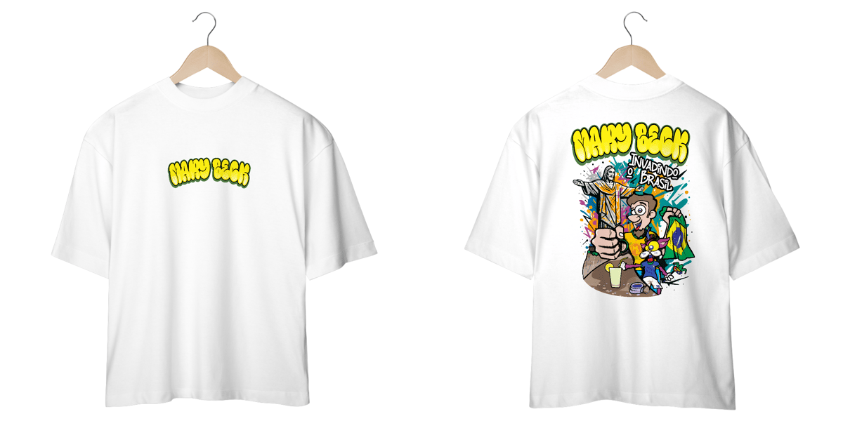 É mais do que roupa, é um hino à alegria brasileira, perfeito pra quem vive no ritmo do som, da festa e da zoeira. Caimento amplo e solto, trazendo a tendência streetwear com muito estilo e atitude.